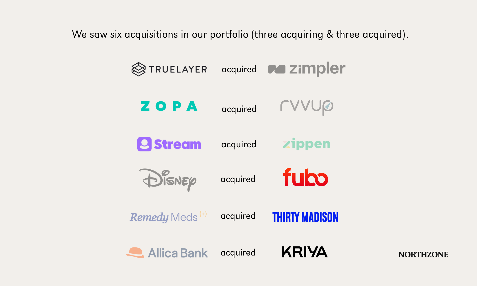 M&A is firmly back on the table in 2025, as evidenced by our three portfolio companies that were acquired this year. Thirty Madison joined forces with US healthcare startup Remedy, which aims to become the US’s leading digital health platform. Fubo’s long-anticipated acquisition by Disney was confirmed in November, marking a huge milestone for the live sports streaming platform. Kriya, meanwhile, was acquired by Allica Bank, the UK’s fastest-growing business bank. Our portfolio companies were also on the hunt for acquisitions: TrueLayer acquired Zimpler to expand its open banking network, Stream acquired pensions tech firm Zippen, while Zopa acquired Rvvup to bolster its retail finance offering.
